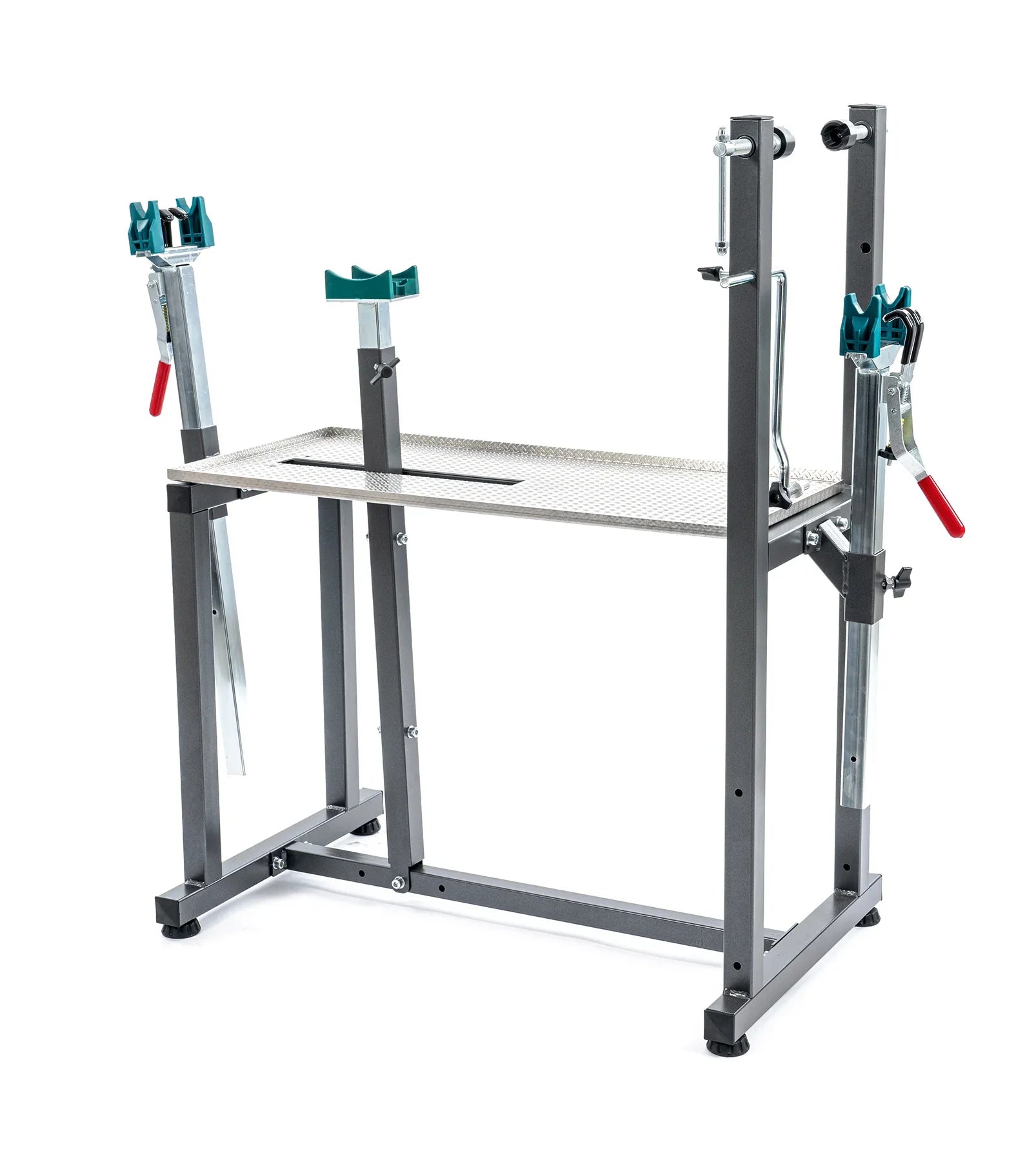 Stół warsztatowy do konserwacji rowerów, idealny do wszystkich specjalistycznych warsztatów. Specjalnie zaprojektowany, aby móc ustawić rower w dowolnej konfiguracji z kołami lub bez i móc pracować z najmniejszymi możliwymi rozmiarami, aby ułatwić Lużywać. Dostępne są dwie wersje: wersja Pro, kompletna ze wszystkimi wspornikami oraz wersja podstawowa (art. 10260) z możliwością obudowy wszelkich wsporników, które można zakupić osobno. Akcesoria (zawarte w wersji PRO): - Podwójne mocowanie widelca zapewniające pewny chwyt przedniej/tylnej osi przelotowej