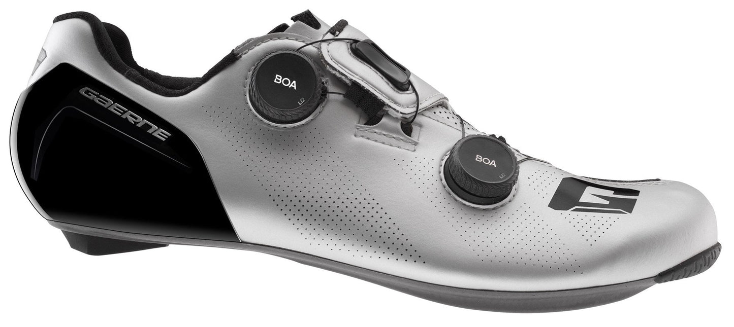 Gaerne EPS Leichtes Kohlenstoff Sonne 12,0 Ultra -Licht und Ultra -dünn. Das optimierte Kohlefaserdiagramm stellt sicher, dass jede Watt Strom in die Pedale übertragen wird. Die Stabilität des Fußes hat sich dank der Form der Sohle im Bereich des Fußbettes zugenommen. Vier Lufteinlässe garantieren die Belüftung im Schuh. Die Sohle verfügt über einen Nicht -Slip -Einsatz auf der Spitze und eine austauschbare Rückenlehne hinten. Die Positionsoptionen der Tacchetta wurden im Vergleich zur vorherigen Sohle um 9 mm erhöht. Mit einer gedruckten Ausrichtungsskala auf der Sohle können Sie die Position der Tacchetta speichern. Außergewöhnlicher Starrheitsindex von 12.Technical Details